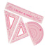 Das Set enthält: ein 15 cm langes Lineal, ein 10 cm langes 60°-Geodreieck, ein 7 cm langes 45°-Geodreieck und einen 180°-Winkelmesser