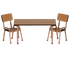 Tisch- und Stuhlset, das zum Mausloch Bauernhaus passt. Er ist aus Buchenholz mit Metallbeinen gefertigt. Bitte beachte die handgefertigten Farbdetails an den Füßen der Beine - am Tisch als auch an den Stühlen. Das Set wird mit 2 Stühlen geliefert.