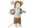 Diese abenteuerlustige Maus ist perfekt für einen Wanderausflug in die Natur ausgestattet. Sie trägt eine wetterfeste Jacke, eine gemütliche Hose und robuste Schuhe, damit sie bei jedem Wetter gut gerüstet ist. In ihrem praktischen Schlafsack kann sie es sich nach einem langen Spaziergang bequem machen und neue Energie für den nächsten Tag sammeln. Dank der Magnete in ihren Händen kann sie ihren Wanderstock sicher halten oder sich an metallischen Oberflächen befestigen.