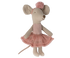 Anmutige Ballerina Maus, Kleine Schwester in Rose, mit Tutu und Stirnband, ideal für fantasievolles Tanzen und Spielen.