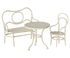 Café-Set-Möbel, die zu den Mäusen der kleinen& großen Schwester/den kleinen& großen Bruders passen. Das Set besteht aus einer Bank, einem Stuhl und einem Tisch und ist ein perfekter Ort, um die Nachmittagssüßigkeiten zu genießen