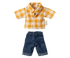 Dieses Set besteht aus einem gelb karierten Hemd und einer Hose.