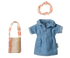 Dieses Set besteht aus einem Kleid, einem Haarband und einer kleinen Tasche.