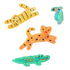 Größen: Jaguar 64 mm b x 45 mm h, Tiger 61 mm b x 36 mm h, Croco 64 mm b x 29 mm h, Toucan 25 mm b x 37 mm h