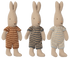 Dieses süße Häschen in Mikrogröße trägt einen gestreiften Anzug, der aus einer weichen Leinen-/Baumwollmischung gestrickt ist. Der Strickanzug wird in 3 schönen Farbkombinationen hergestellt.
