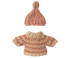 Ein weicher Strickpullover und eine Mütze für die kalte Winterzeit. Dies wird deine kleinen Freunde sicher warm halten. Die Sets passen den Mäusen in der Größe Große Schwester/ Großer Bruder