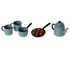 Eine Dose für Kaffee, zwei Tassen, ein Topf und eine Pfanne mit köstlichen Blätterteigkuchen die in der kalten Winterzeit ein skandinavischer Genuss sind. Alle diese Teile werden in einer Papierbox geliefert, die aussieht wie ein Ofen.