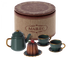 Dekoriere einen gemütlichen Weihnachtsteetisch mit diesem Set. Es ist perfekt für die Größe der Mäusefamilie. In der Geschenkbox findest Du eine Teekanne aus Metall, zwei Tassen, einen Teller und einen köstlich dekorierten Kuchen aus Polyresin.