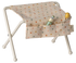 Alle Babymäuse passen perfekt auf diesen Wickeltisch. Der Tisch hat praktische Taschen an der Seite, in denen eine kleine Rassel und eine Tube Babylotion stecken. So sind alle benötigten Accessoires beim wickeln des Babys leicht zu erreichen.