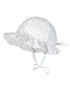 Der weiche, leichte und atmungsaktive Stoff ist ganz aus Baumwolle gefertigt und liefert ein komfortables Tragefühl – besonders, wenn das Köpfchen etwas schwitzt. Mit Bindebändchen sitzt der Sommerhut sehr bequem.